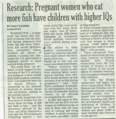 "You know that eating fish improves your developing fetus's cognitive development. However, the EPA