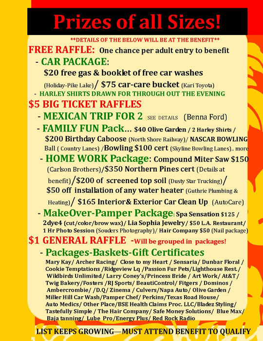 SEE Bottom of Page for PRIZE PACKAGES and Details on the evening!